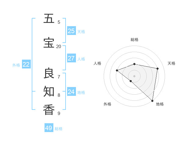 五宝 良知香さんを姓名の画数から五運を鑑定