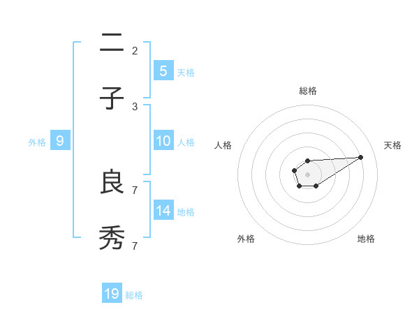 二子 良秀さんの総格は19画の1点!
