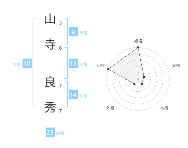 山寺 良秀さんの総格は23画の5点!