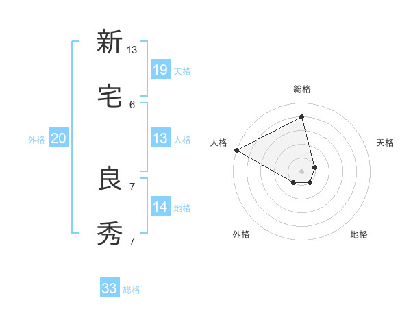 新宅 良秀さんを姓名の画数から五運を鑑定