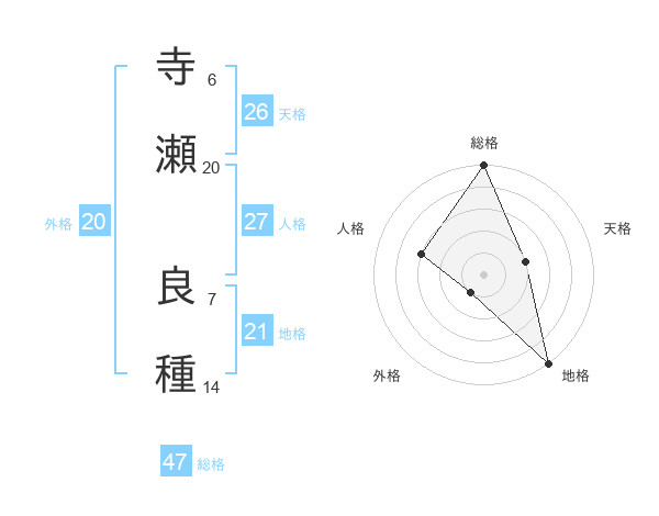 寺瀬 良種さんの総格は47画の5点!