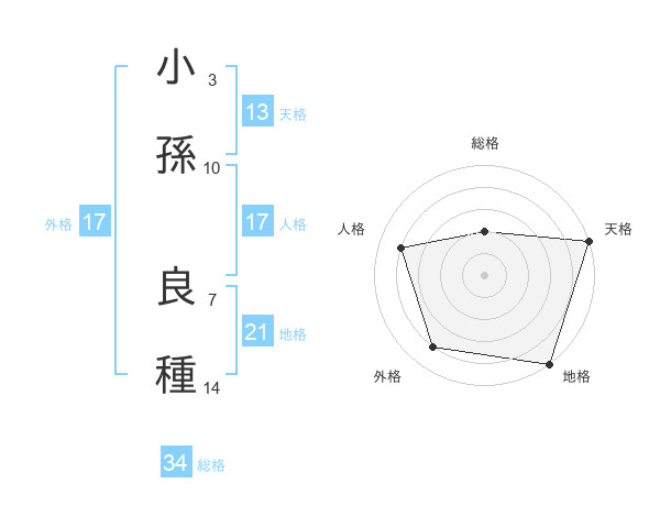 小孫 良種さんの総格は34画の2点!