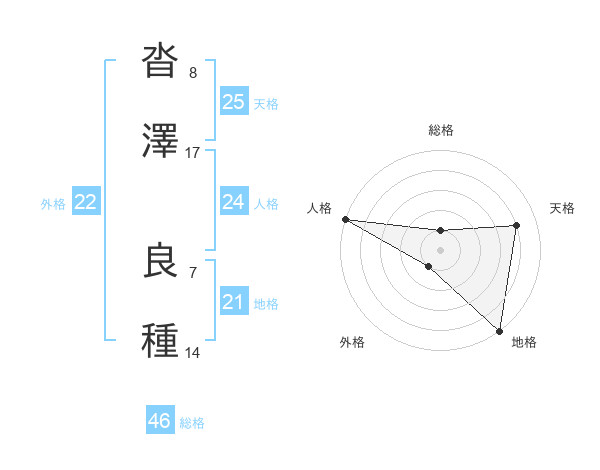 沓澤 良種さんの外格は22画の1点!