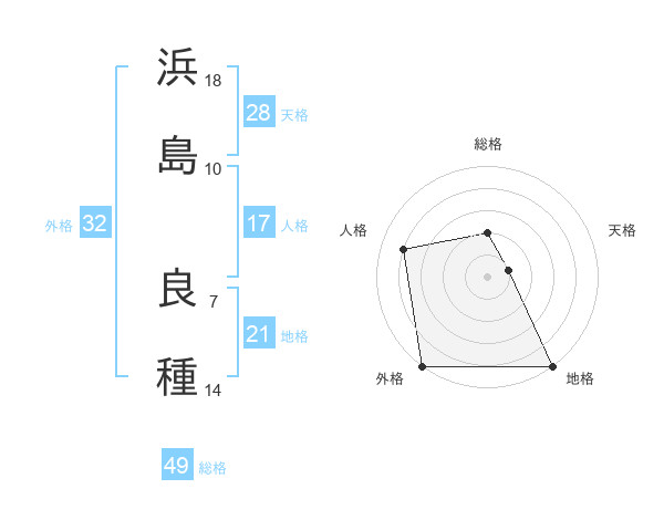 浜島 良種さんの天格は28画の1点!