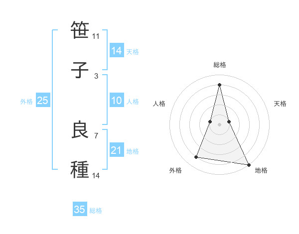 笹子 良種さんの総格は35画の4点!