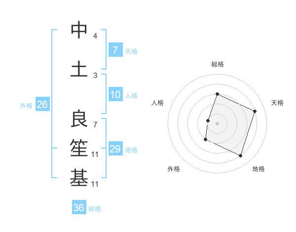 中土 良笙基さんを姓名の画数から五運を鑑定