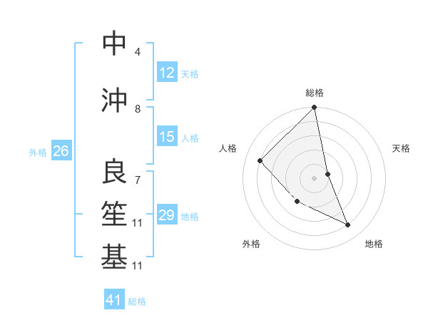 中沖 良笙基さんを姓名の画数から五運を鑑定