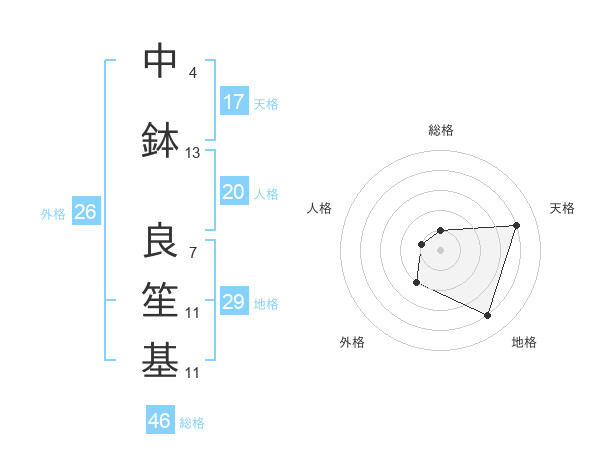 中鉢 良笙基さんを姓名の画数から五運を鑑定