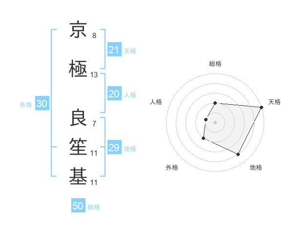京極 良笙基さんを姓名の画数から五運を鑑定