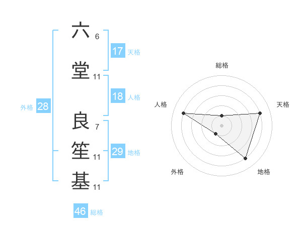 六堂 良笙基さんの天格は17画の4点!