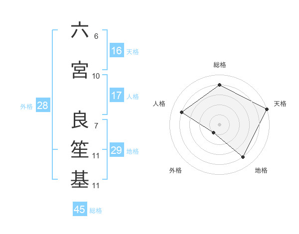 六宮 良笙基さんを姓名の画数から五運を鑑定