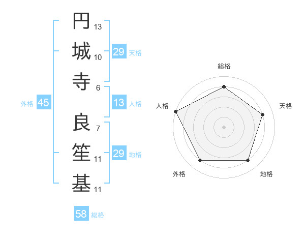 円城寺 良笙基さんの総格は58画の4点!