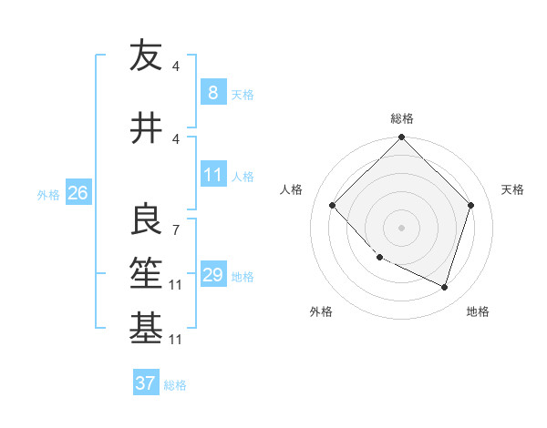 友井 良笙基さんを姓名の画数から五運を鑑定