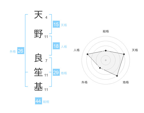 天野 良笙基さんの天格は15画の4点!