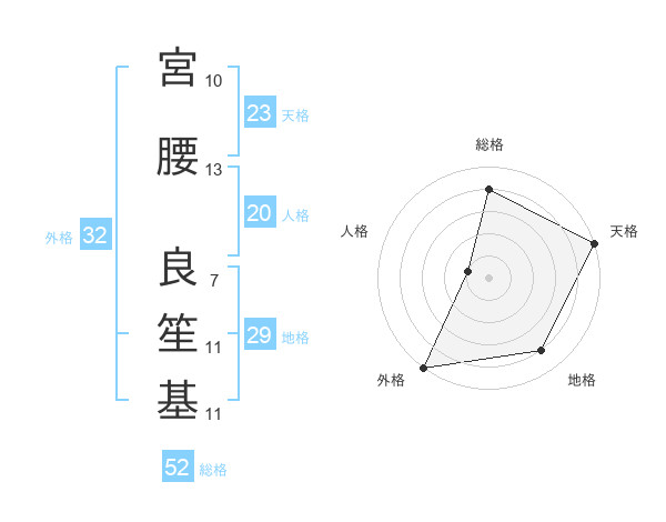 宮腰 良笙基さんを姓名の画数から五運を鑑定