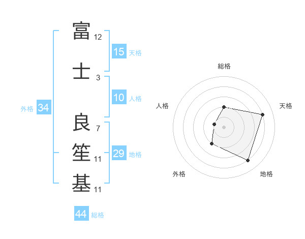 富士 良笙基さんの天格は15画の4点!