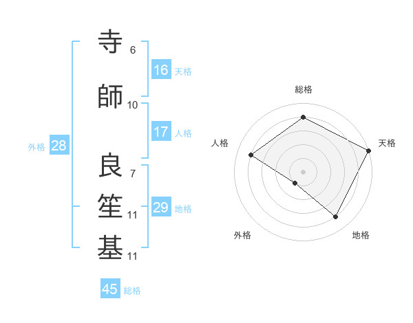 寺師 良笙基さんを姓名の画数から五運を鑑定