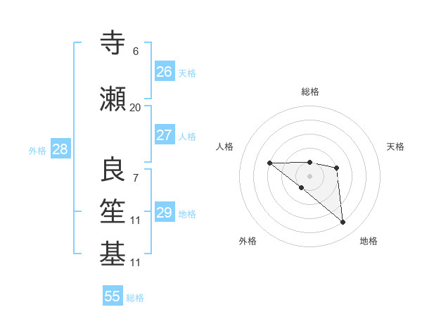 寺瀬 良笙基さんを姓名の画数から五運を鑑定