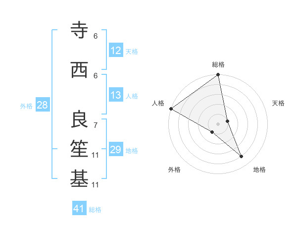 寺西 良笙基さんを姓名の画数から五運を鑑定