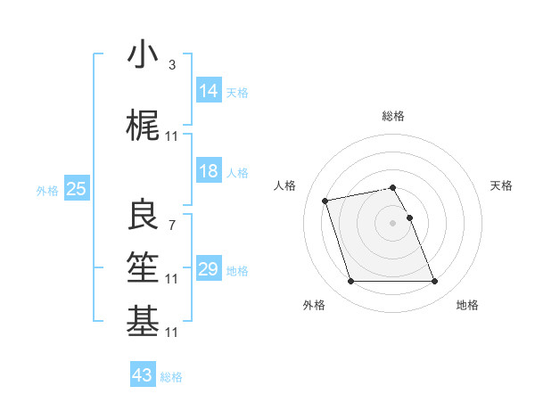 小梶 良笙基さんを姓名の画数から五運を鑑定