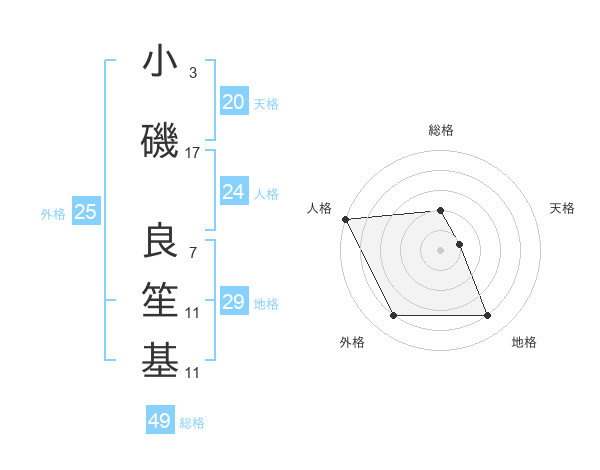 小磯 良笙基さんの外格は25画の4点!
