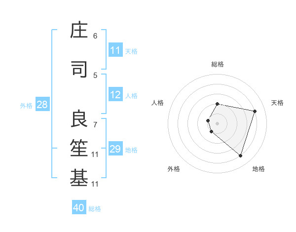 庄司 良笙基さんの総格は40画の2点!