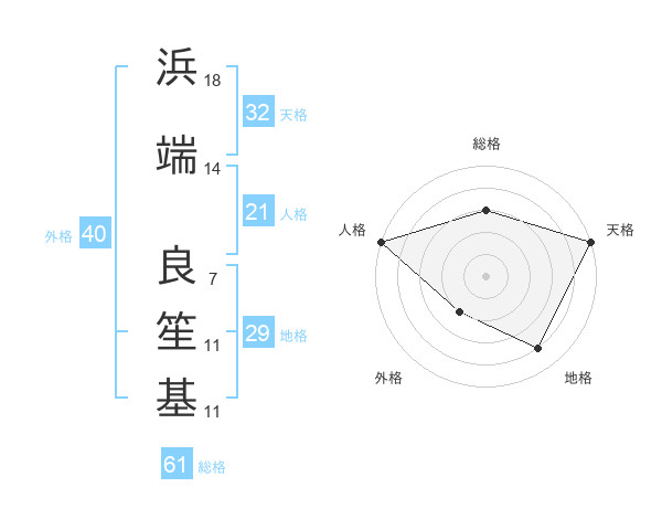 浜端 良笙基さんの総格は61画の3点!
