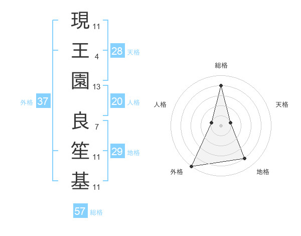 現王園 良笙基さんを姓名の画数から五運を鑑定