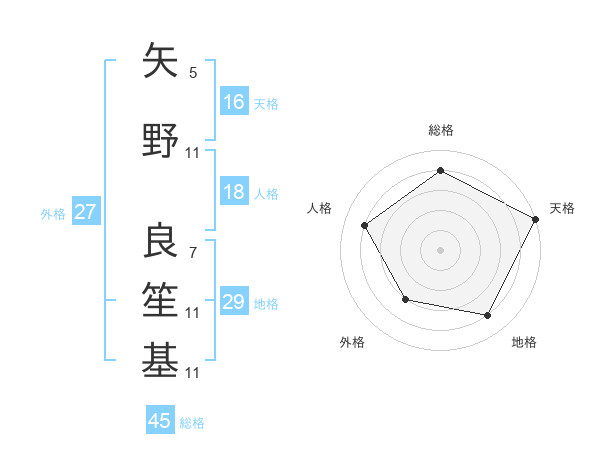 矢野 良笙基さんを姓名の画数から五運を鑑定