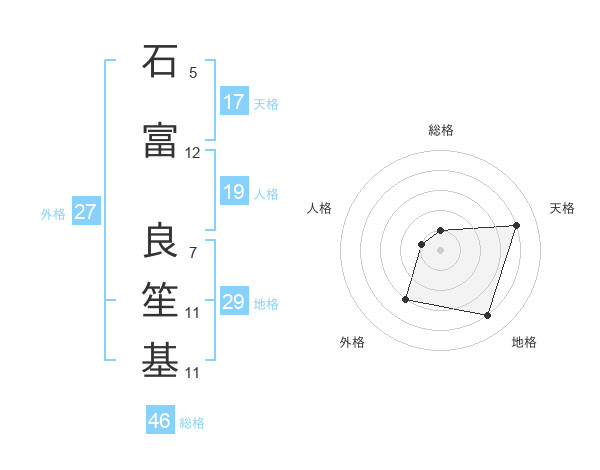 石富 良笙基さんを姓名の画数から五運を鑑定