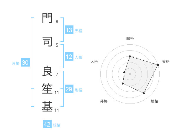 門司 良笙基さんを姓名の画数から五運を鑑定