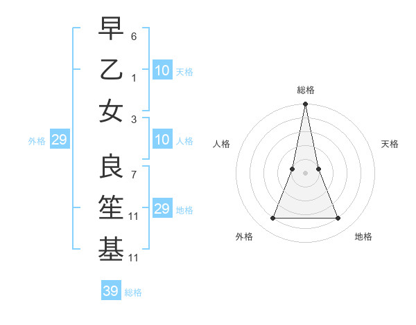 早乙女 良笙基さんの総格は39画の5点!