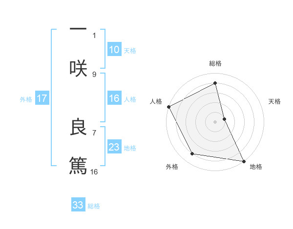 一咲 良篤さんを姓名の画数から五運を鑑定