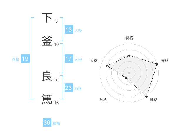 下釜 良篤さんを姓名の画数から五運を鑑定