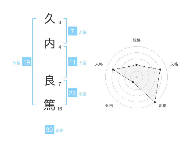 久内 良篤さんの総格は30画の2点!