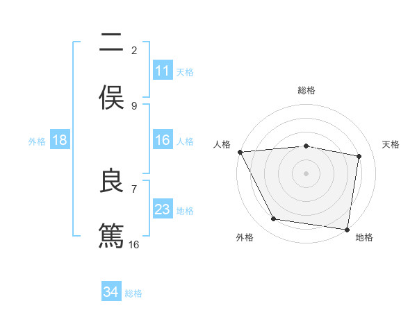 二俣 良篤さんの天格は11画の4点!