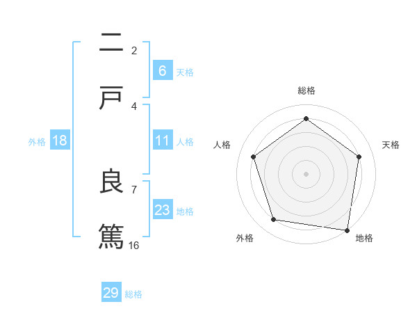 二戸 良篤さんを姓名の画数から五運を鑑定
