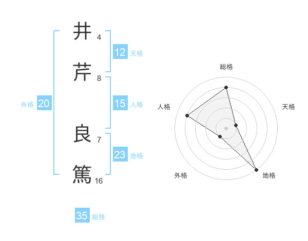 井芹 良篤さんの総格は35画の4点!