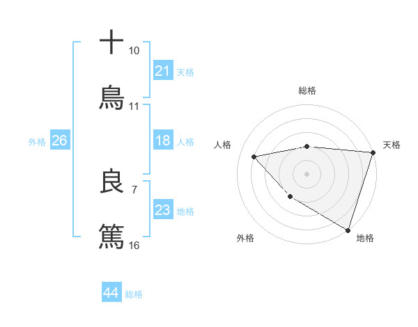 十鳥 良篤さんを姓名の画数から五運を鑑定