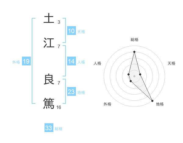 土江 良篤さんの総格は33画の4点!