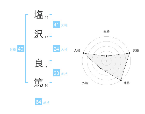 塩沢 良篤さんの地格は23画の5点!
