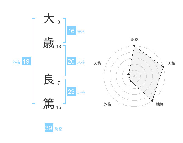 大歳 良篤さんを姓名の画数から五運を鑑定