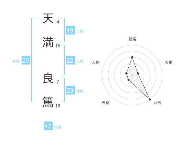 天満 良篤さんの総格は42画の3点!