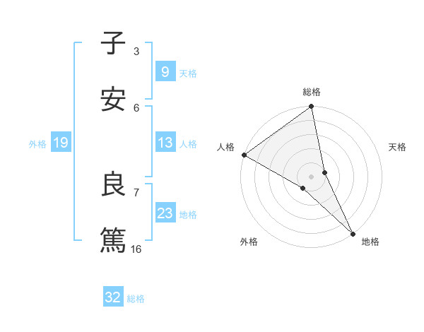 子安 良篤さんの総格は32画の5点!