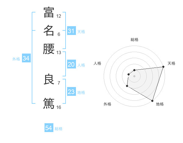 富名腰 良篤さんの総格は54画の1点!