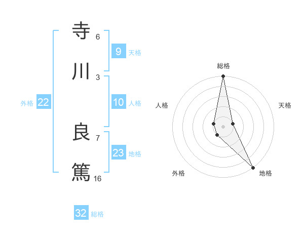寺川 良篤さんの総格は32画の5点!