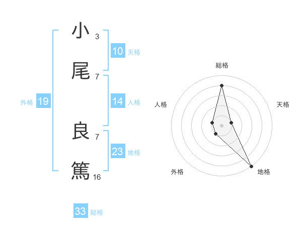 小尾 良篤さんを姓名の画数から五運を鑑定