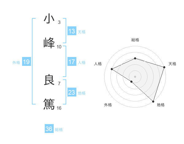 小峰 良篤さんの天格は13画の5点!