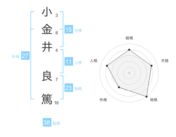 小金井 良篤さんを姓名の画数から五運を鑑定