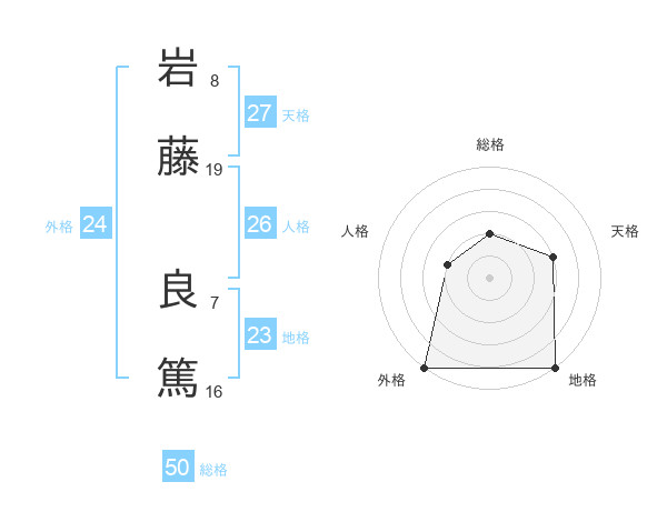 岩藤 良篤さんの総格は50画の2点!